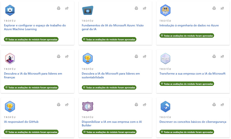 Anexo alguns dos certificados obtidos na Microsoft: